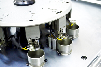被測試元件通過振動盤振動給料,進入無振動直線送料系統(tǒng),經(jīng)入料夾傳送至分割器圓盤測試夾,到達測試工位時,元件引腳經(jīng)測試電極與測試觸點接觸接入測試電路。元器件經(jīng)過測試後,再由圓盤傳送至相應的分箱落料口,氣缸驅(qū)動開夾頂桿,被測試器件良品經(jīng)落料管道進入設定的分料箱,不良元件落入廢料箱。